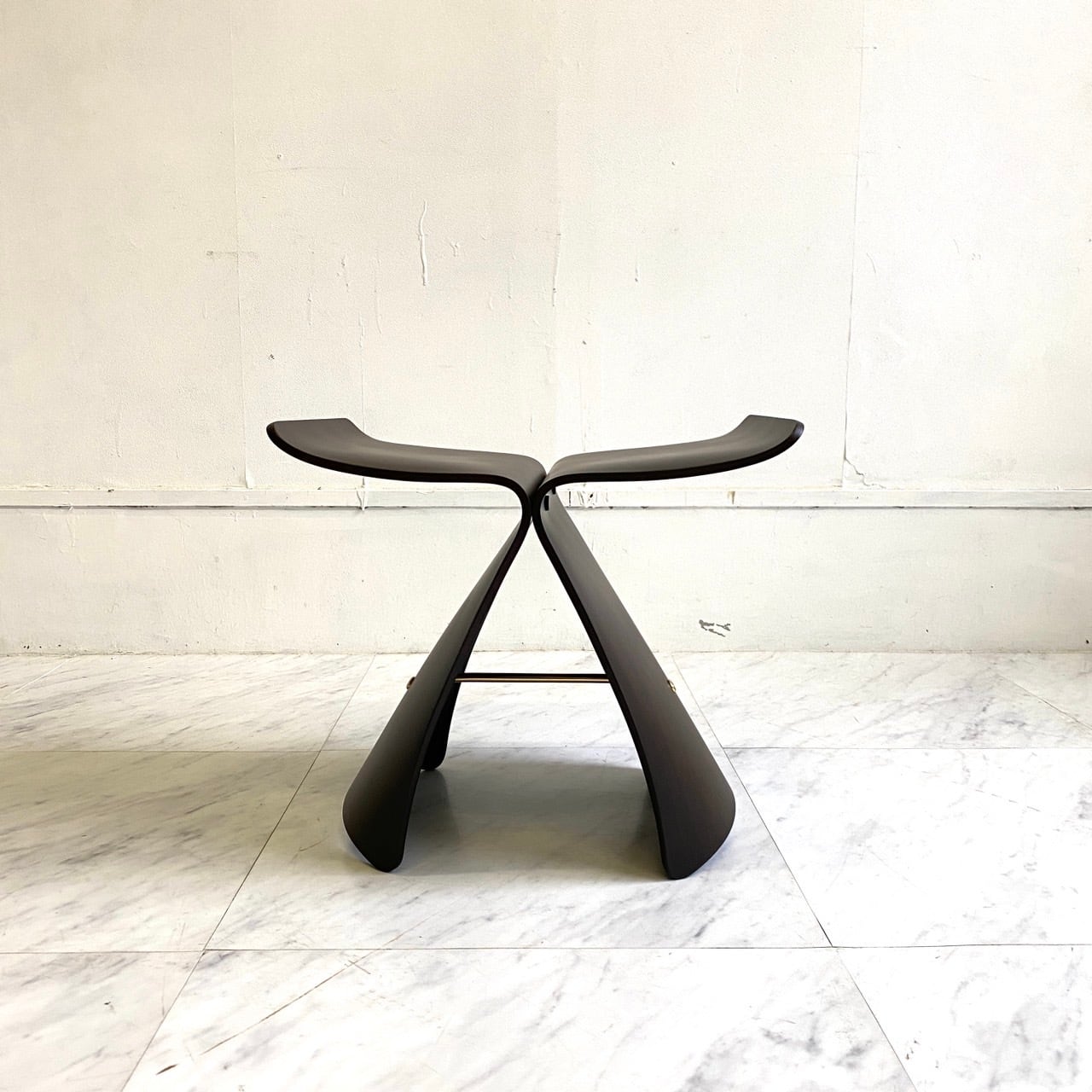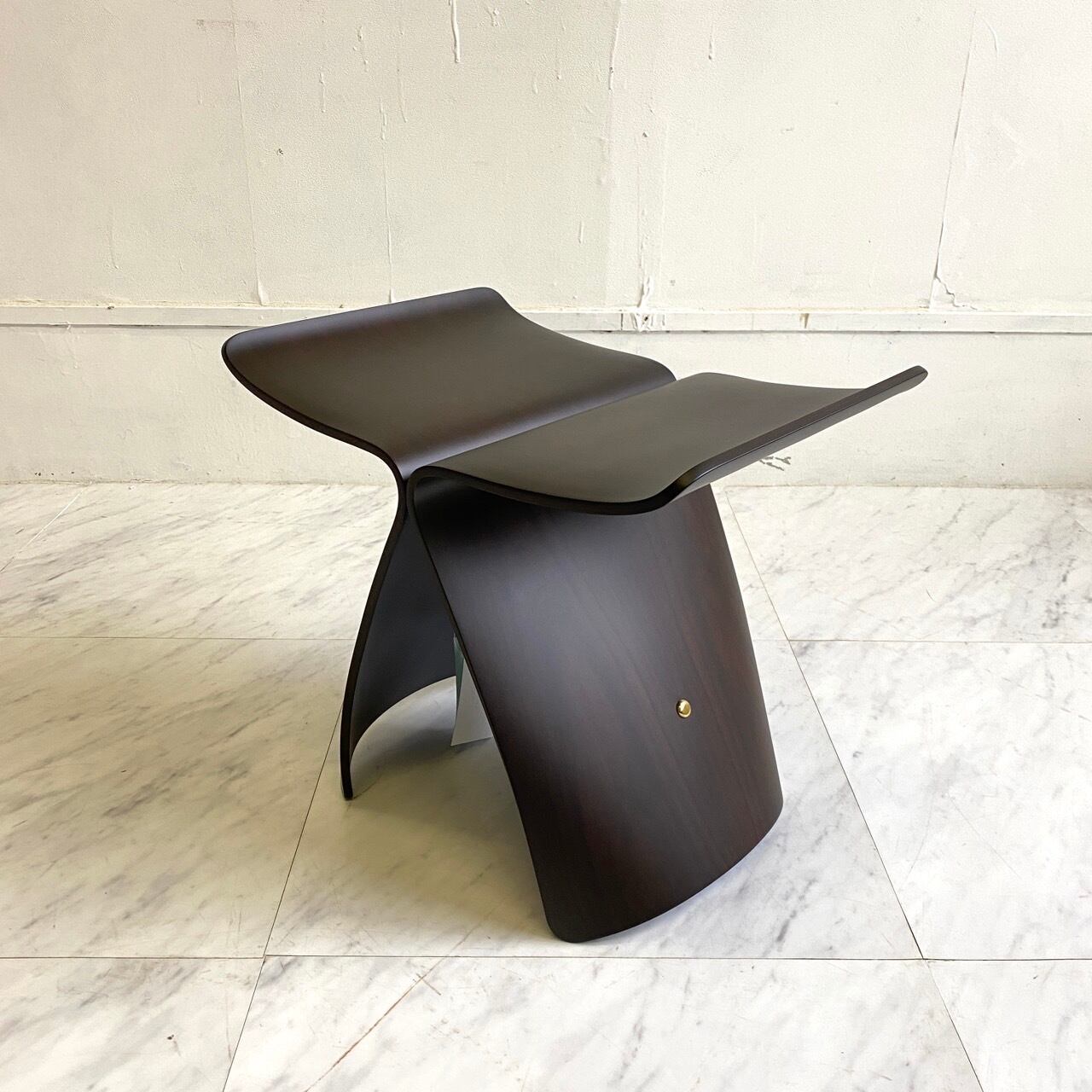 日本の工業デザインの礎を築いたデザイナー・柳宗理によってデザインされ、1956年に発表されたジャパニーズデザインのアイコン的な家具。柳氏のイマジネーションと、天童木工の技術が出会ったことで、この美しいスツールが誕生。ルーブル美術館やニューヨーク近代美術館など、世界各地の美術館にコレクションされているデザイン史の傑作です。同じ形の2枚の成形合板を真鍮金具でジョイントしたシンプルな構造。個性的なフォルムですが、多様なスタイルのインテリアに合わせられ、