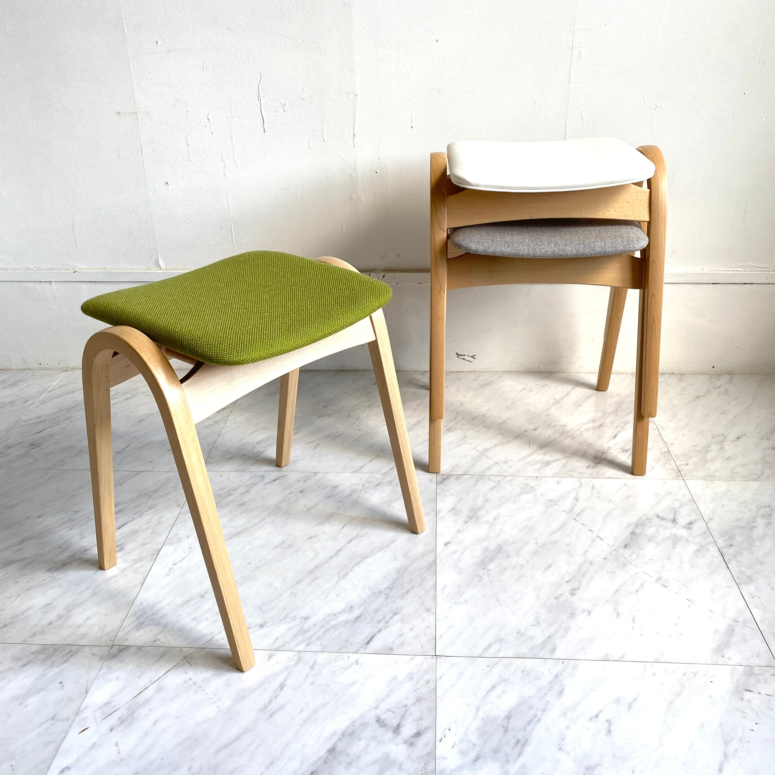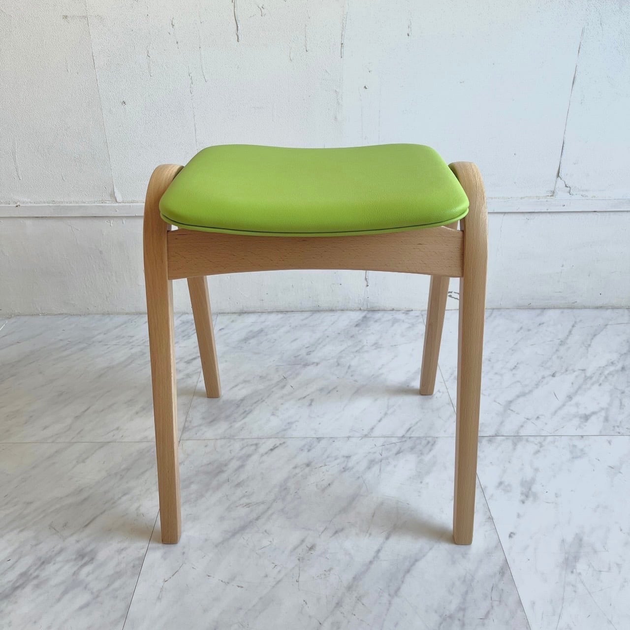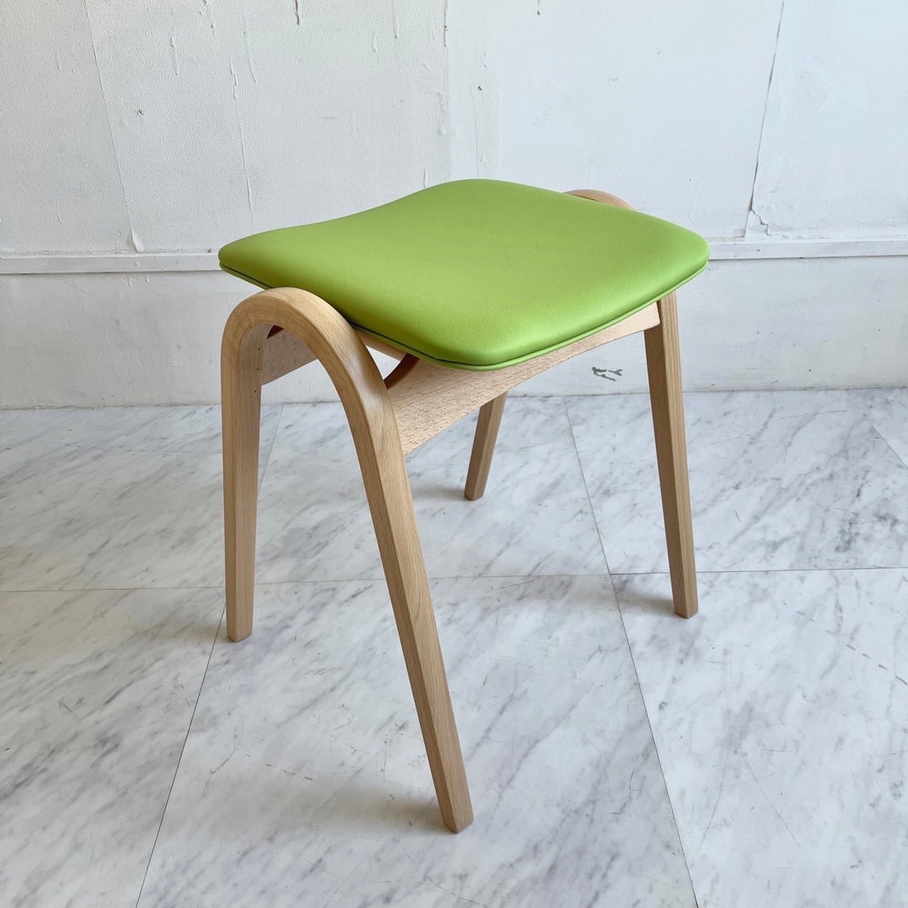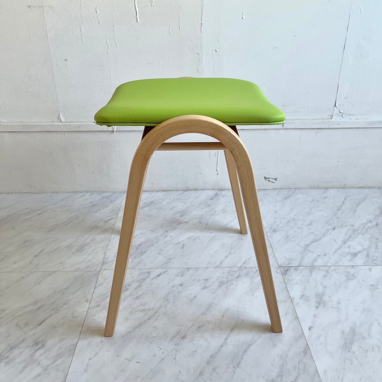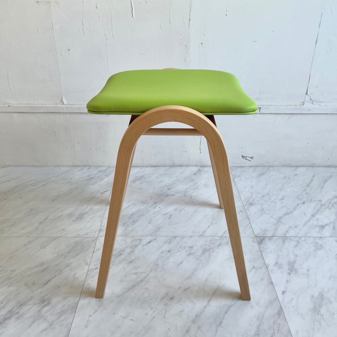 秋田木工 AKIMOKU スタッキングスツール 剣持勇 NO.202 ブナ材 ナチュラル色 座面/PVC黄緑(合成皮革) 曲木家具